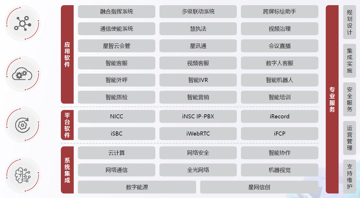 深圳星網信通科技股份有限公司專注音視頻融合通信軟件開發和系統集成20年,秉承“咨詢為先導、產品為依托、服務為核心”的業務模式,致力于成為融合通信行業龍頭,為政府、金融、電力、能源、互聯網、公共事業、大企業等客戶提供融合通信整體解決方案以及綜合性IT解決方案。